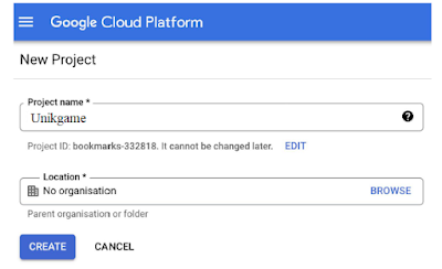 Primero, necesitarás crear una clave API en tu Consola de Desarrollador de Google. Abre https://console.cloud.google.com/projectcreate en tu navegador. Verás la siguiente pantalla: